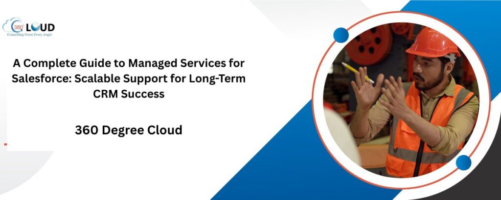 As Salesforce keeps increasing its range of capabilities by every passing year, never-ending, strategic support thereby remains non-negotiable. Choosing the right Salesforce managed services partner has now become a strategic decision to punch through and future-proof the company’s investment in CRM.Managed services provide the controls, stability, and vision for long-term success, whether you are a mid-size company scaling its first Salesforce org or an enterprise re-architecting its cloud strategy. With this with expert partners like 360 Degree Cloud, companies will receive the deep expertise and reliable delivery every step of the way.